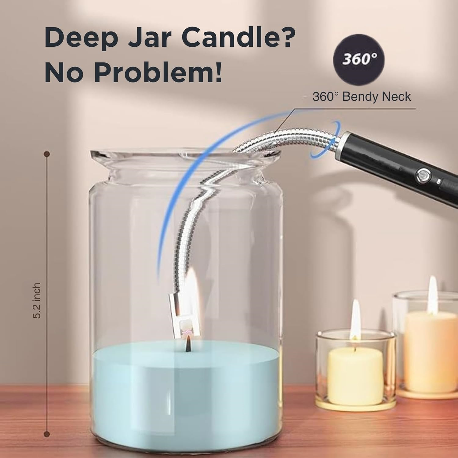 360° Flexible & Safe Design: Equipped with a 360° rotatable flexible neck that bends at any angle, keeping your hands at a safe distance from the flame. The long, soft head makes it easy to light stoves, candles, and BBQs safely and comfortably.